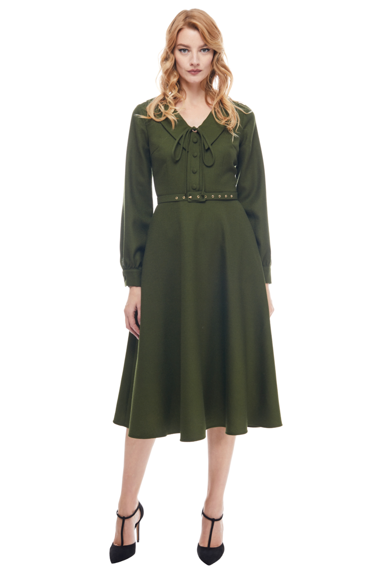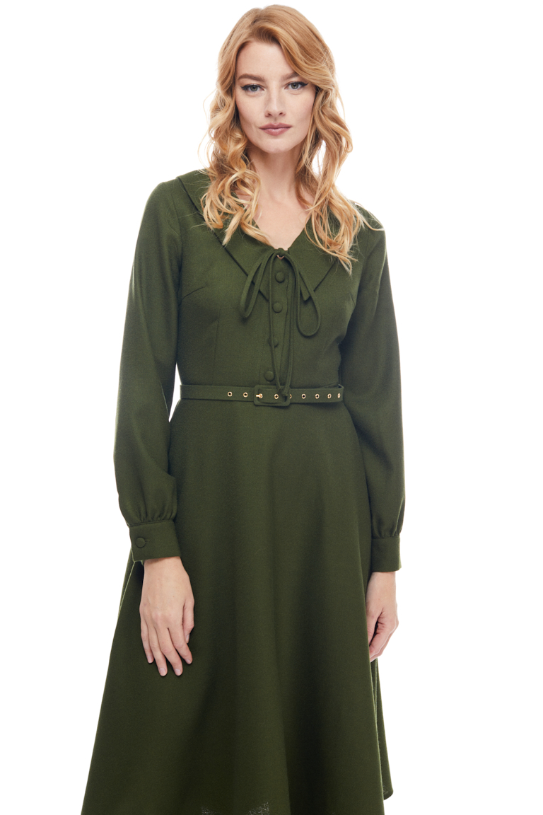 You will project elegance when wearing this wool dress from Chemistry. It has a self-tie bow at the neckline and long sleeves, concealed zip fastening at back and in seam side pockets.The flattering hem creates gentle movement with every step that you take.