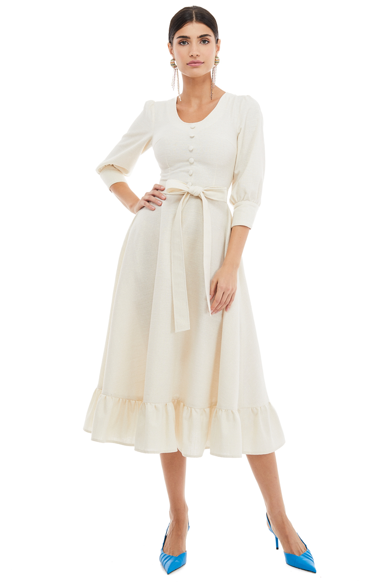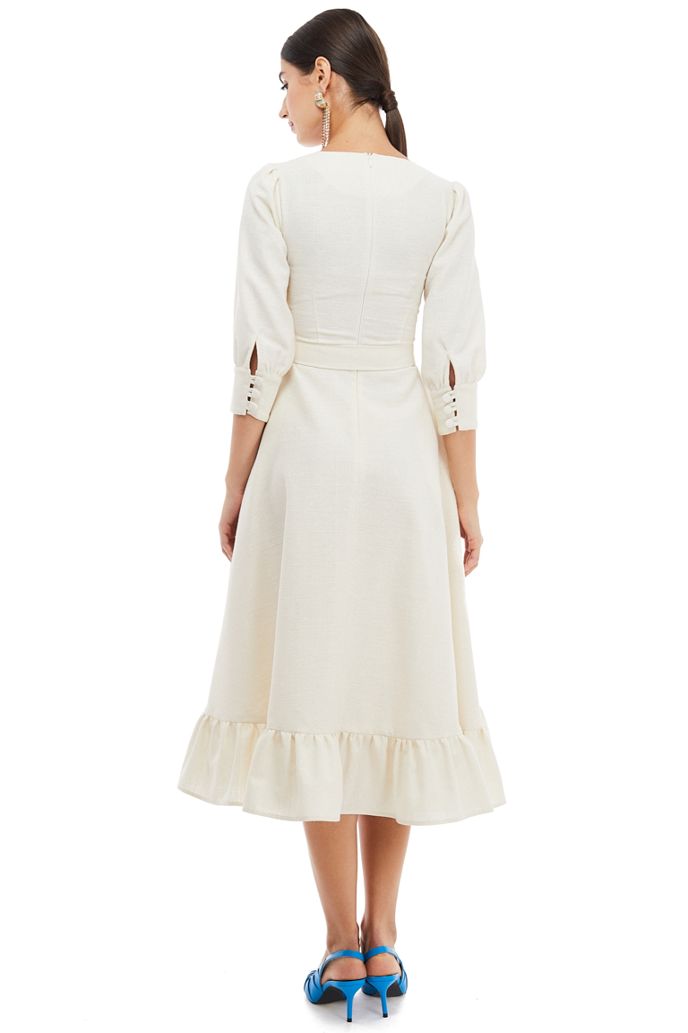 Button Embellished Cotton Midi Dress