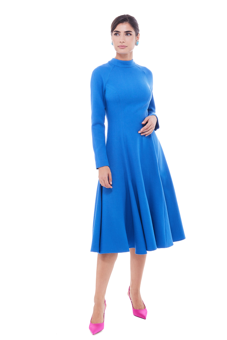This fit-and-flare dress is cut from wool and has godets along the flared hem. It has long sleeves, in seam pockets and a concealed zip fastening at back