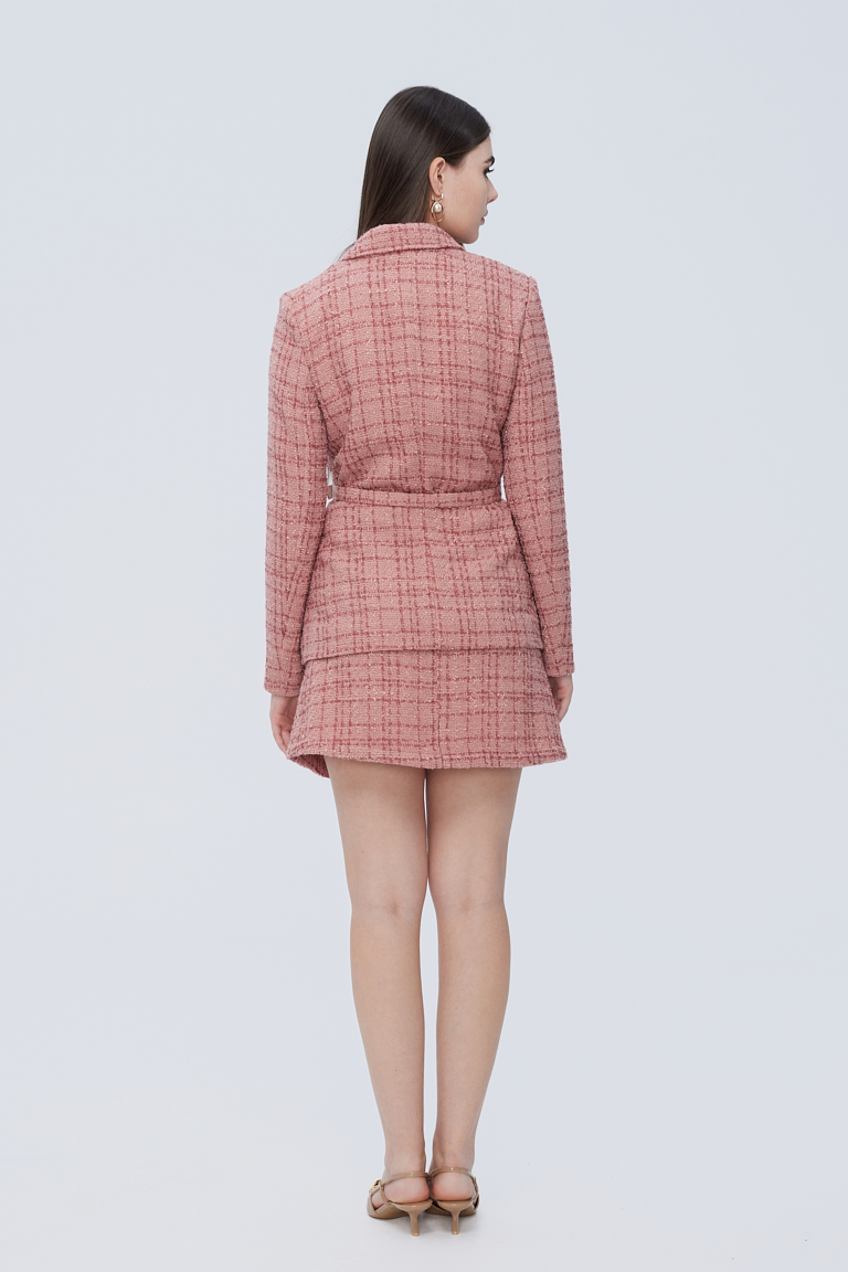 The Marcia Blazer is cut from polyester tailored in a classic, sharp silhouette and has a tonal belt to customize the fit. It is fully lined and it has internal shoulder pads. Wear it as stylish suiting with the coordinating skirt.