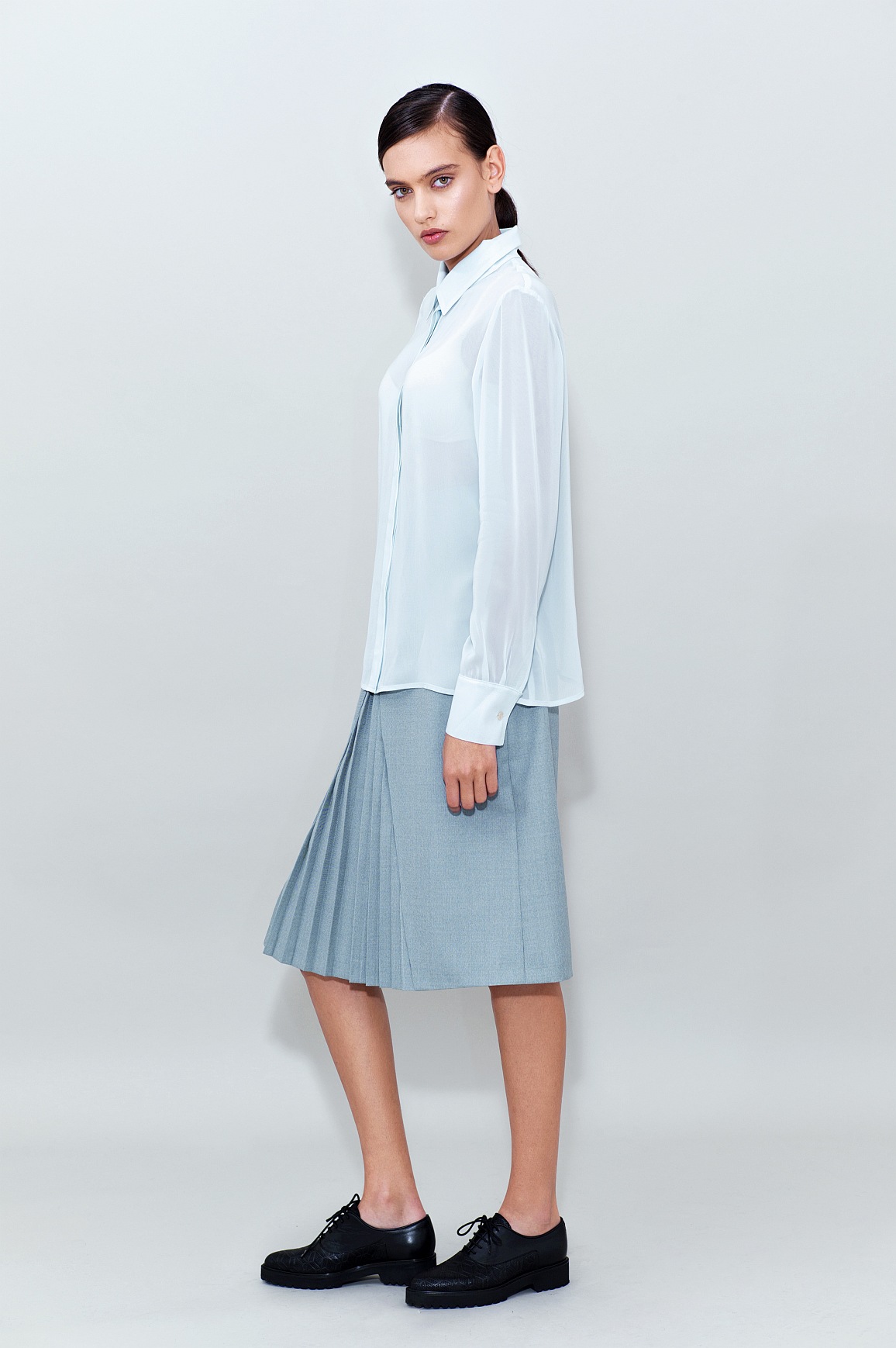 Made from fluid viscose, this shirt has a loose fit design. The Viscose Shirt has a neat collar, a concealed centre front button placket, hand sewn buttonholes and natural bone buttons.